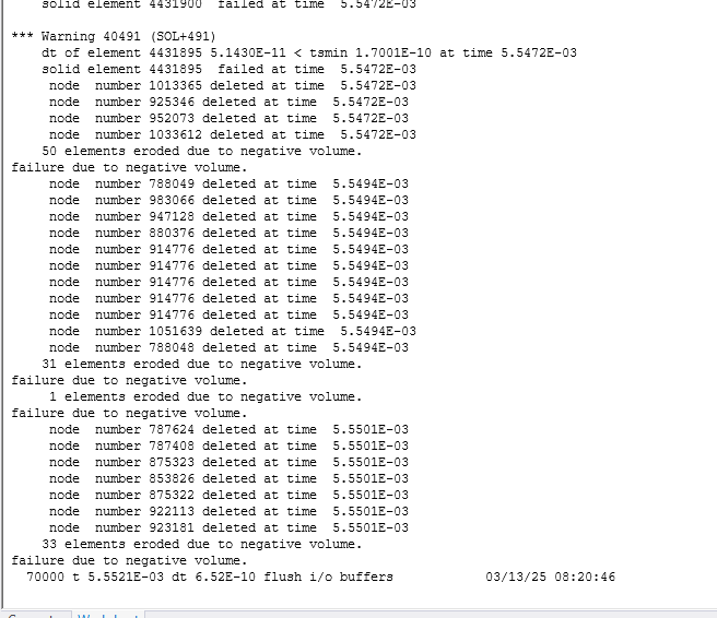 Tell me how to improve the result so that at the second pressure there are no mistakes negative volume and eroded? Is it possible to disable this so that the calculation does not increase in time due to these errors? -