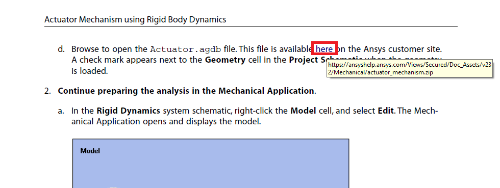 Is any way to download the tutorial files for the Mechanical Tutorials pdf? For example, the reference for the project file says 'Browse to open the Actuator.agdb file. This file is available here on the Ansys customer site.' (page 10)
