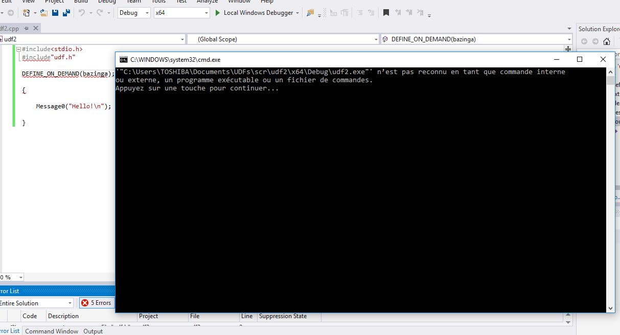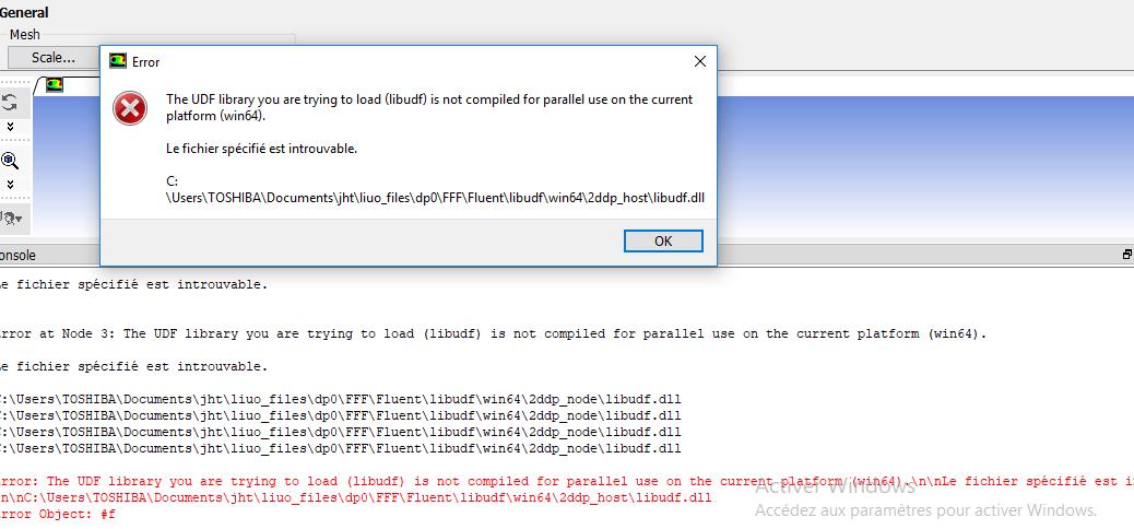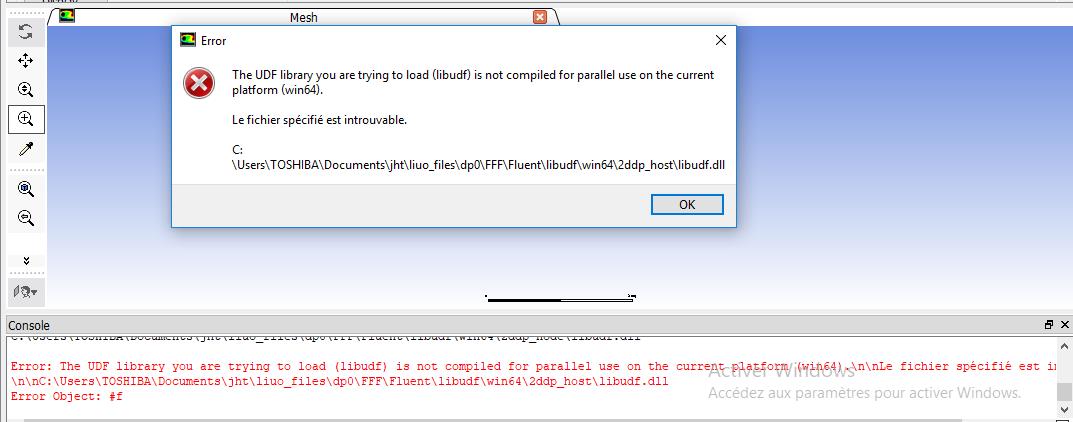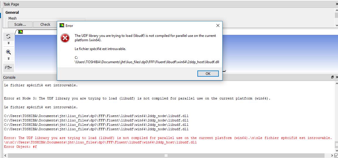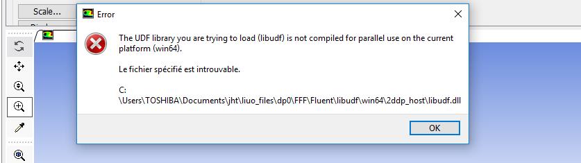 Error: The UDF library you are trying to load (C:UsersTOSHIBADocumentsmoiliuo_filesdp0FFFFluentlibudf) is not compiled for 2ddp on the current platform (win64).nnLe chemin d?accès spécifié est introuvable.
