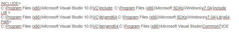 C:Program Files (x86)Microsoft Visual Studio 14.0VClibamd64Â ; C:Program Files (x86)Microsoft SDKsWindowslibx64