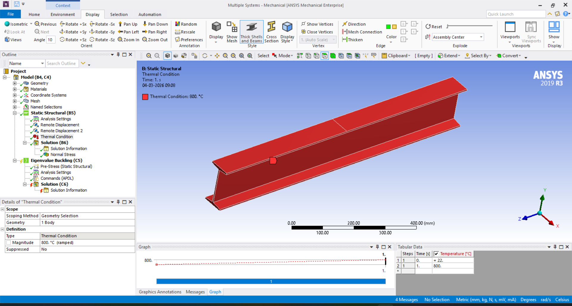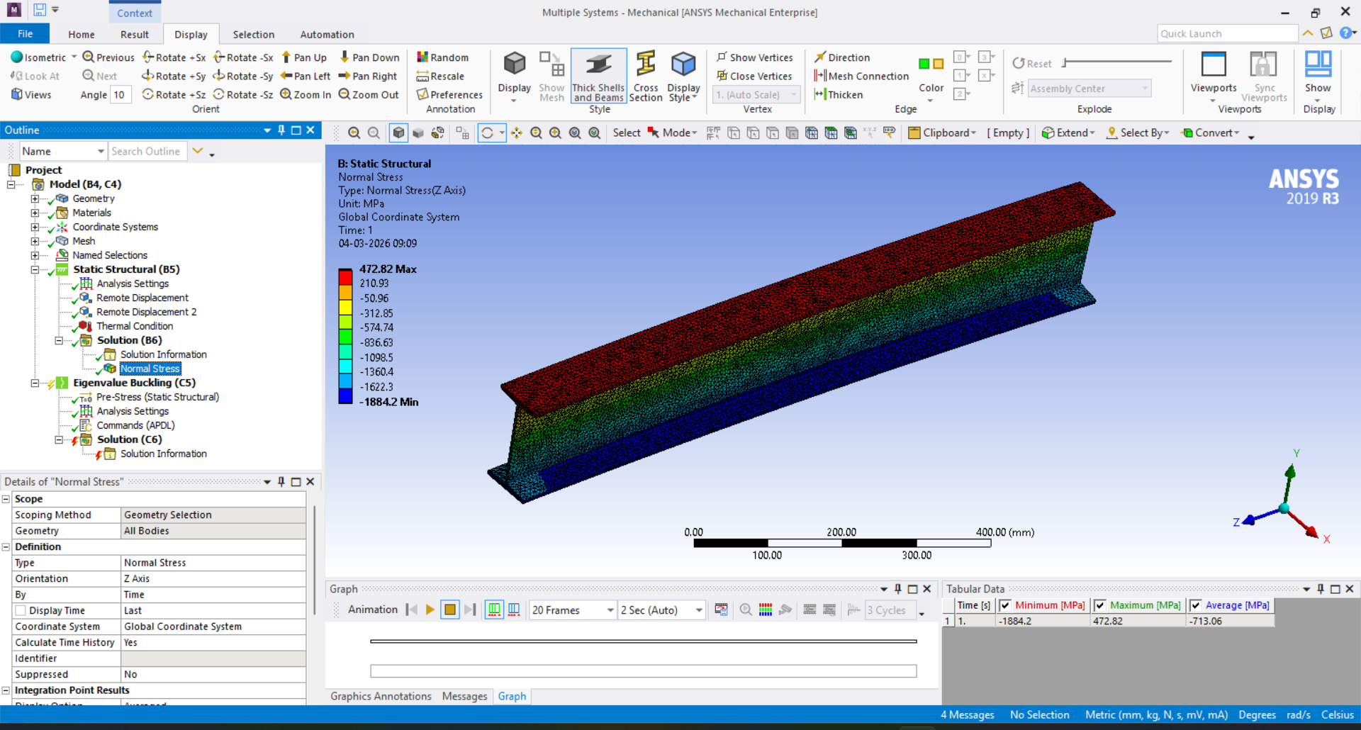 I am currently performing a nonlinear analysis of an uncorroded ISMB 150 steel beam using solid elements in ANSYS Mechanical. As part of the study, I am attempting to introduce residual stresses typically present in hot-rolled steel sections.