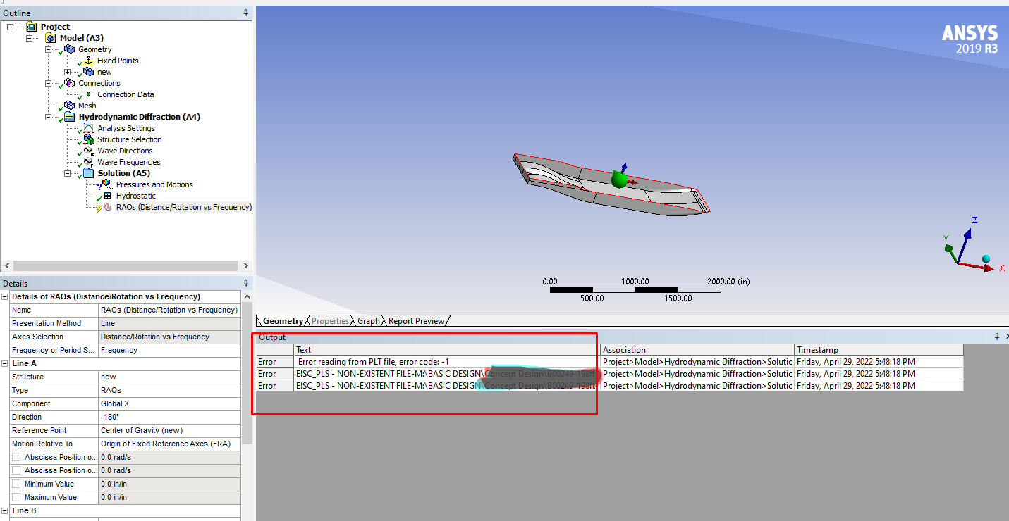 SubscriberI was using WORKBENCH AQWA to obtain the RAO curve in frequency domain(Hydrodynamic Diffraction), but find out the PLT file cannot be readed. while other parts like time domain analysis(Hydrodynamic Response) can be use normally. How can I deal with it?