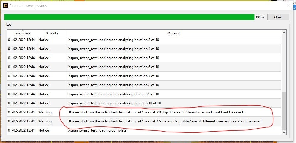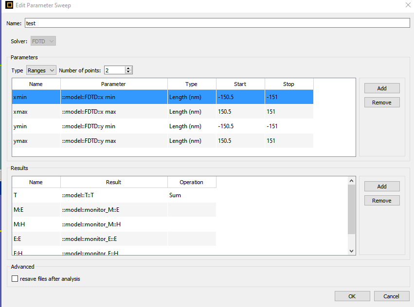 Ansys EmployeeIf you are sweeping the span of FDTD, then the sizes of the matrices will differ, nothing you can do in that case. Measuring T is fine, because this is a scaler, but the matrices must be the same size to be packaged into a single dataset. I didn't entirely understand your intention, and to do this you would need to mesh to remain constant and the span to be the same.