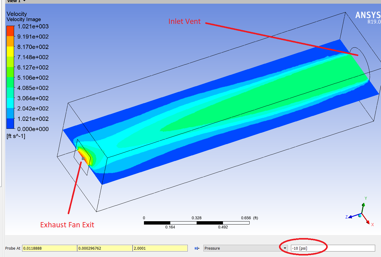 All three of these produced the same results, which is that my fan velocity exceeds what my pressure jump curve should allow by greater than an order of magnitude. After switching back to imperial units for simplicity of my data, I unchecked node values, and the results still show 3,400ft/s velocity, where my fan curve limit is 10ft/s at zero psi.