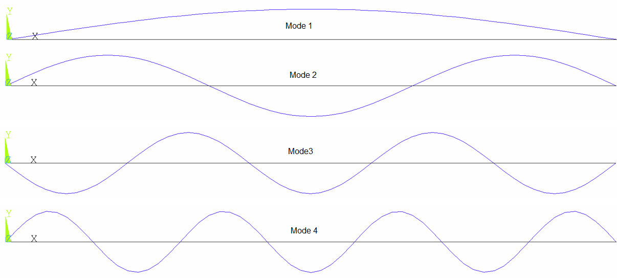DL,ALL,,ROTY,0The beam is subjected to an acceleration of 5g in Y direction, the plot in my original post is the response. The four modes are:
