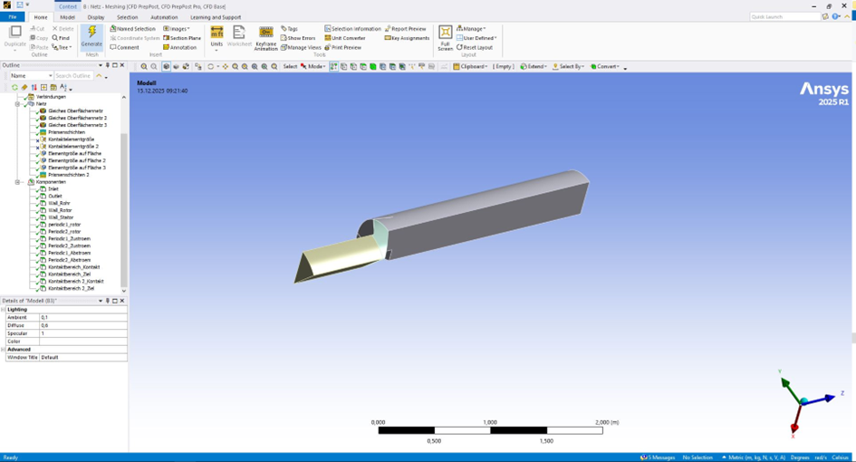 In addition, the boundary surfaces were correctly defined, in particular the inlet, outlet, walls, and the rotor domain.
