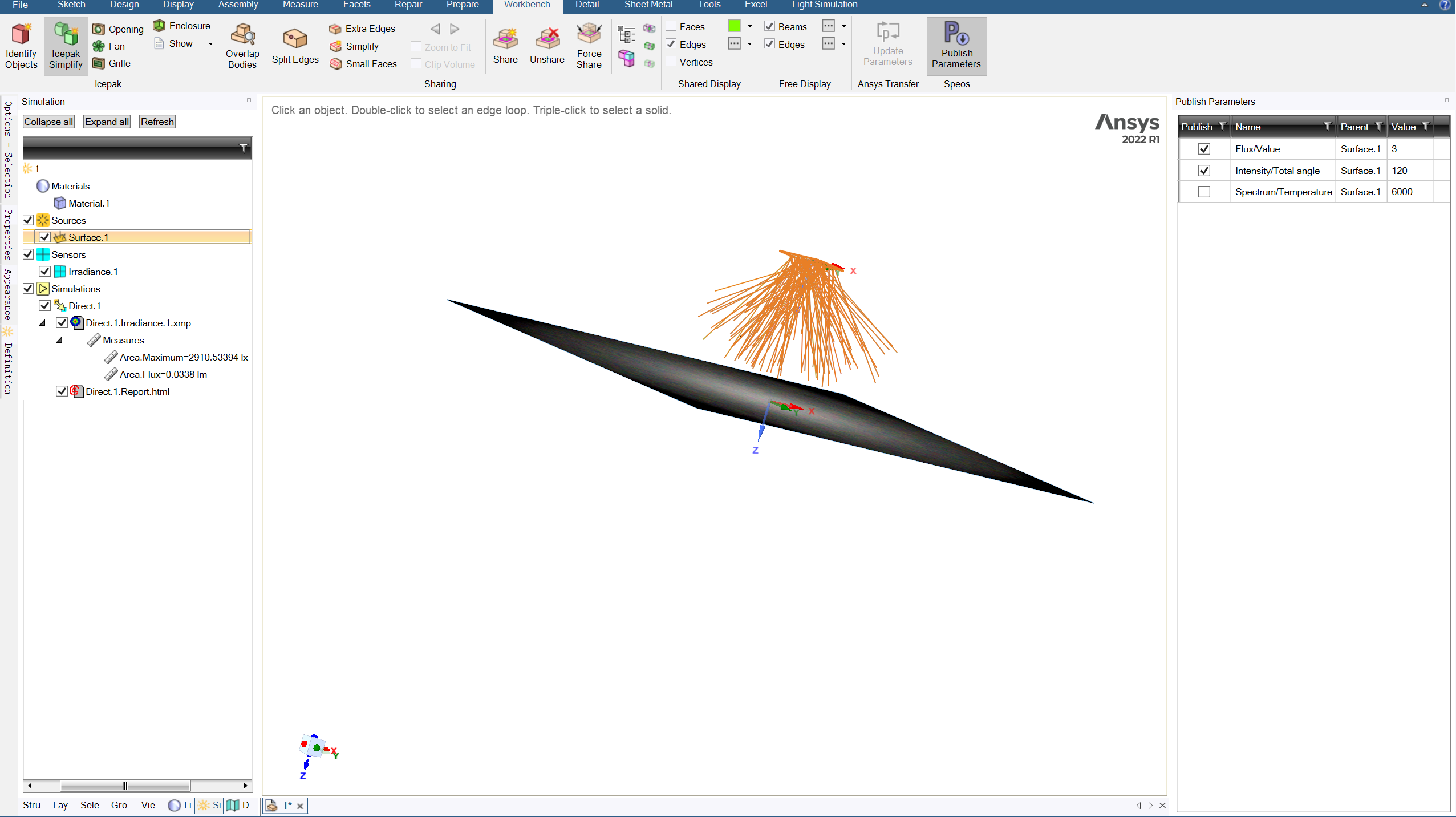 3.speos界面,重新运行direct仿真。
