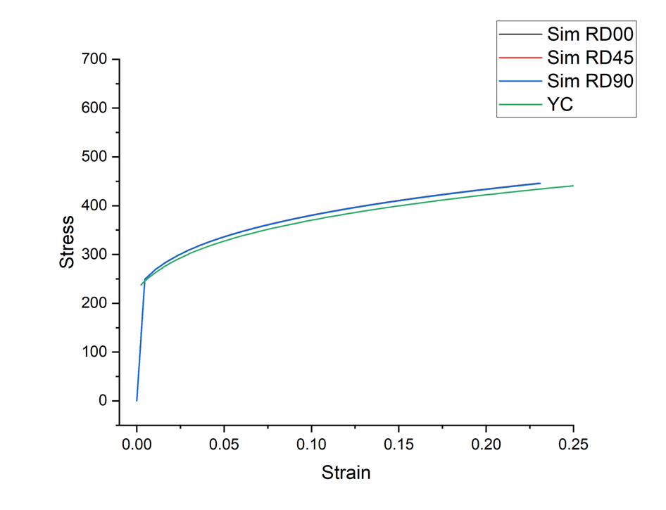 Ansys EmployeeThank you. Assuming that RD is your reference direction, it should yield the same response as the input hardening curve. Here are a few suggestions: