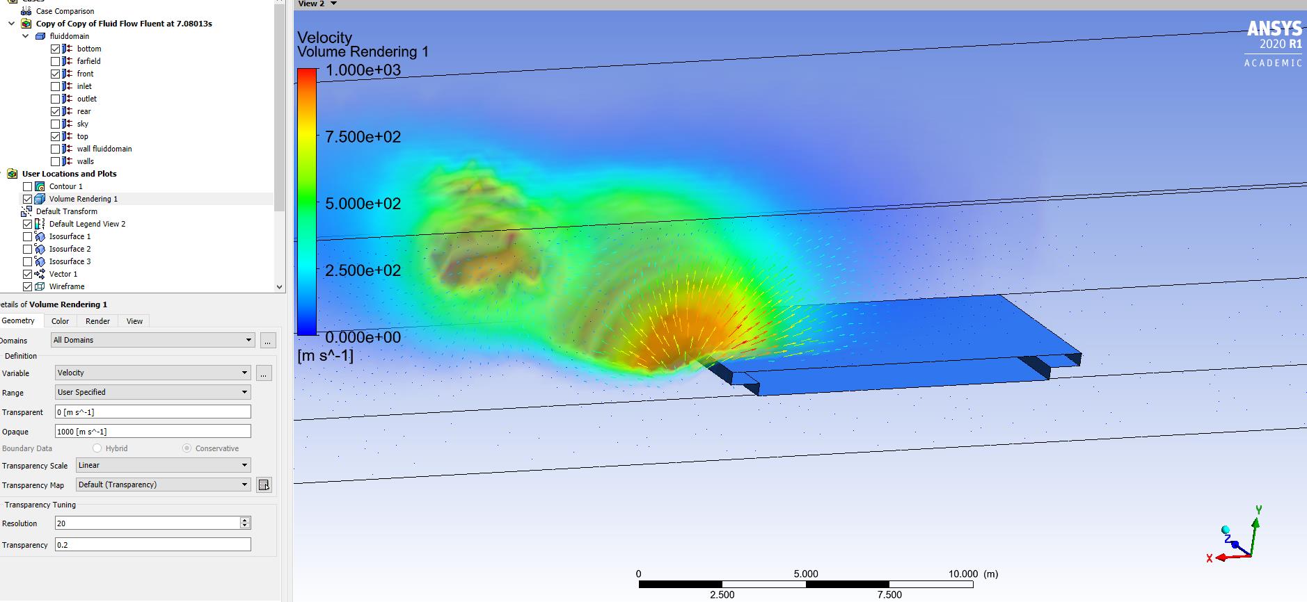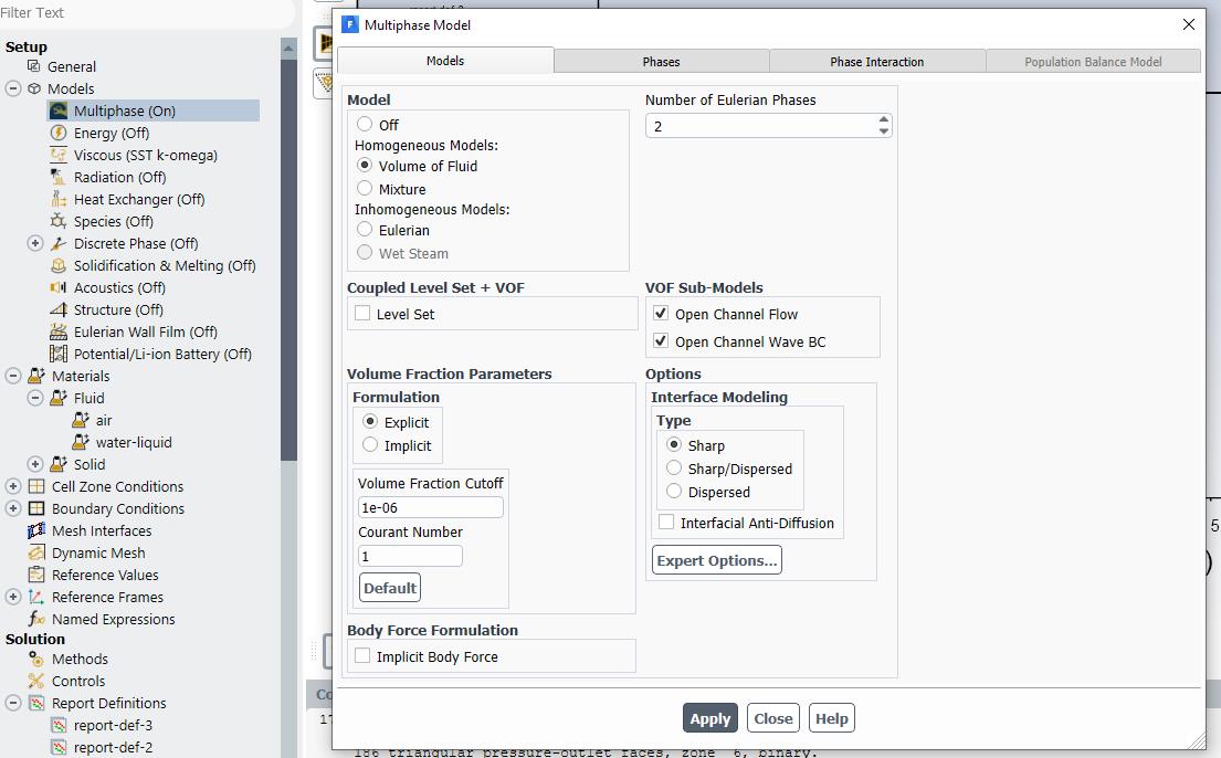 i´m doing a transient, open channel flow simulation and it´s working fine in the beginning, but i keep on getting errors from time to time in my simulation, where the velocity magnitude at one point is about 100000 m/s, while it should be maximal about 10 m/s. These errors are only in one time step and i don´t quite understand whats happening there. I´m using the explicit volume of fluid formulation, and when the error occurs the simulation stops, because the global courant number is higher than 250 for the time step. I also tried adaptive time stepping with maximal step change factor of 100 and a very small minimal time step size, but the simulation is still stopping when the error occurs. (What is really sad because i actually want to let the computer do it´s thing over night)