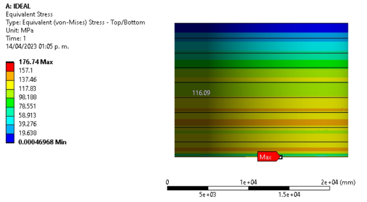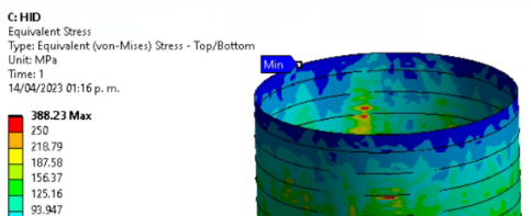 Hi Peteroznewman. Thank you so much for your reply. I turned on large deflection, and got some peak stresses larger than the yield strength of the steel (Structural steel 250MPa - Red Areas in the picture), so do you recommend me use NL Structural Steel in the whole tank, or just in some areas? Also, i use a displacement suport in the upper edge because it goes attached to the roof of the tank (also structural steel plates).