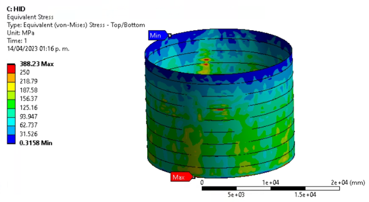 Vertical Storage Tank Statical Simulation – Large Deflection and Non Linear Mat.