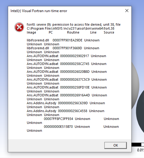 I need help resolving this random error message I'm getting when I try to run an explicit dynamics simulation. It had been working great for a few days and now I can't run anything without this error, even starting new fresh test projects, re-opening old projects that used to work without error, restarting my machine, re-installing ANSYS, etc. Static structural simulations seem to still work fine.