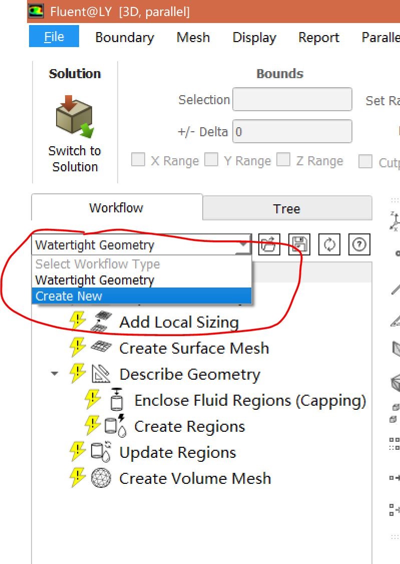 Forum ModeratorWhen you open Fluent Meshing click on the Workflow and then Clean CAD Workflow. Do not import anything first: the approach has been added to simplify using Fluent Meshing for many users but allow extra bits to be added by advanced users.Â