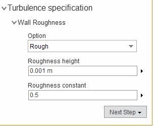 Roughness Height: The default roughness height is zero, which corresponds to smooth walls. For the roughness to take effect, a non zero value must be specified. For a uniform sand-grain roughness, the height of the sand-grain can simply be taken as roughness height . For a non-uniform sand-grain, however, the mean diameter would be a more meaningful roughness height. In case the distribution data is not available but Ra (surface Roughness) value is known, Roughness height is calculated as: