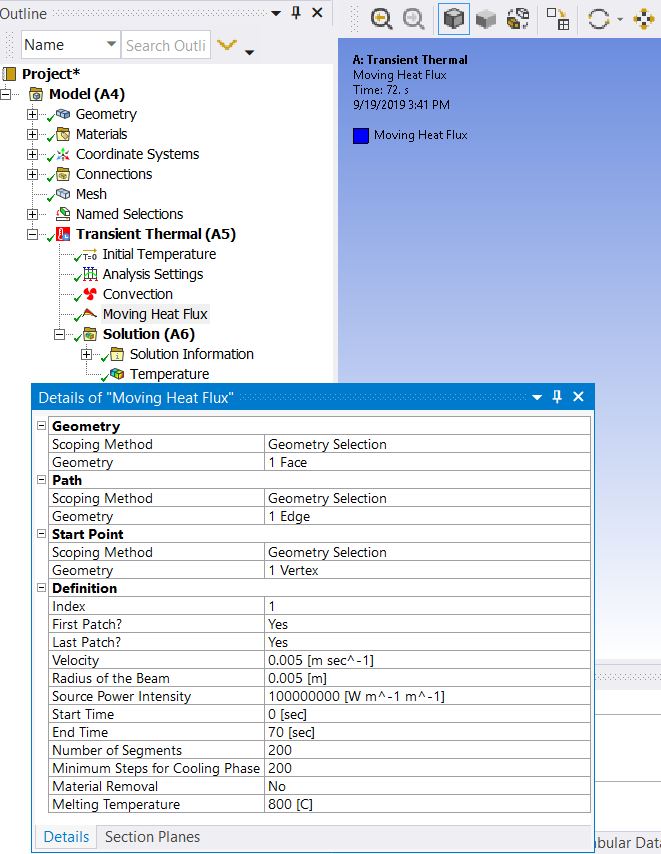 I am trying to simulate welding in Ansys Workbench under transient thermal, but I am not able to create moving heat load. Can anyone help me understand how to create a moving heat source in Ansys? I am using Robotic welding where Robot moves welding torch with constant speed of 10mm/s, and I want to create the same movement of heat source in Ansys with speed of10mm/s. If you have any idea regarding the topic please help me, it is a part of my bachelor thesis and its quite important for me. Do I need to write commands or learn some coding language to create a moving heat source?