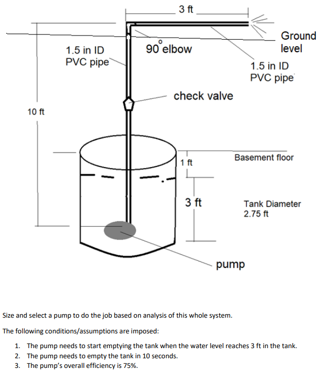 SubscriberSo the problem called for the tank to be emptied when the water level in the tank reached 3ft. I used that and the tank's diameter to calculate the volume. The tank is emptied in 10 seconds so I used that to find the volume flow rate. So I was trying to find a pump powerful enough to empty that volume in that amount of time. -
