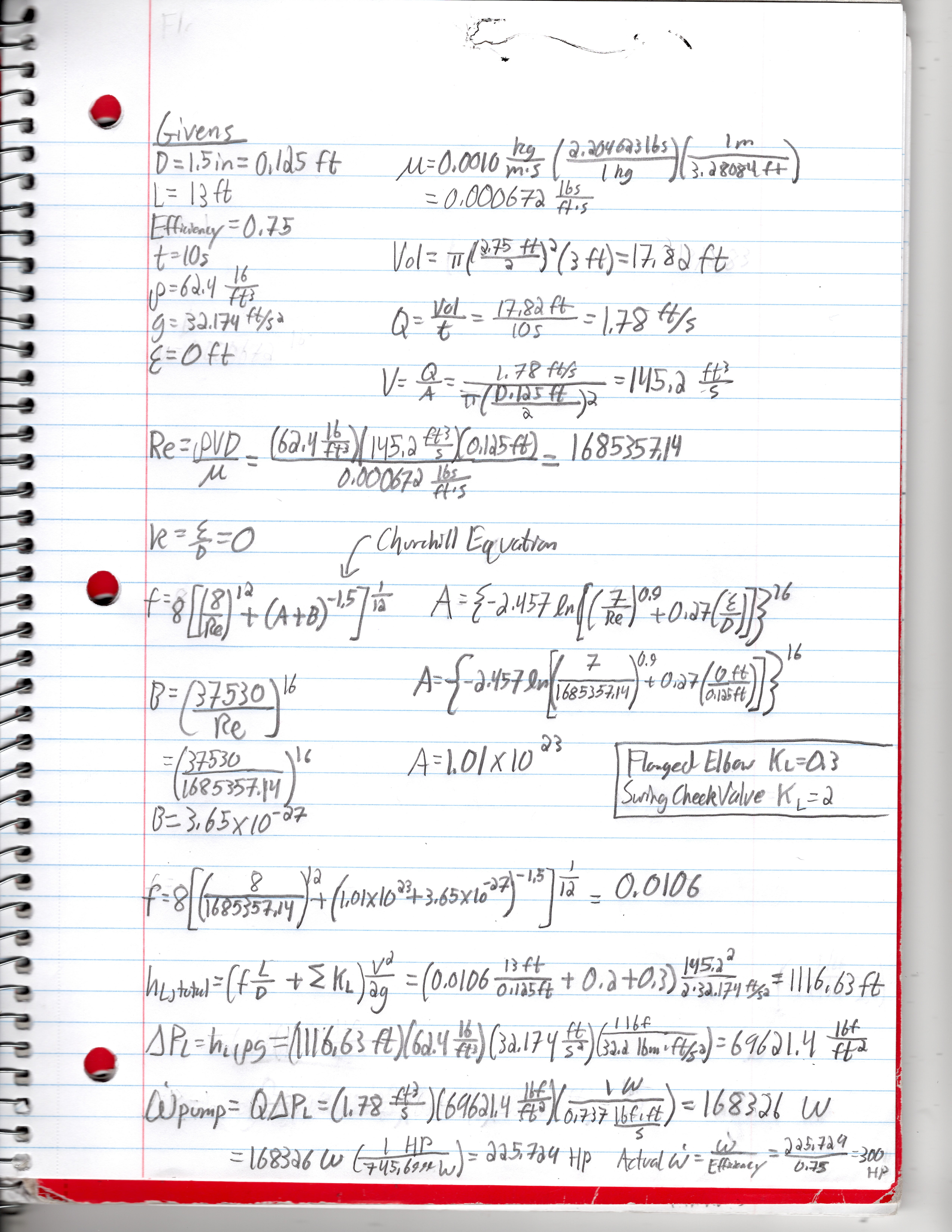 Ansys Employeeone consideration missing in your calculations is hydrostatics. Water will be pushed up the pipe by the water weight in the tank, thus creating a favorable force assisting the pump. I haven't done the calculations, but it maybe enough to use a much smaller pump as opposed to 300 HP you are getting when hydrostatic upforce is neglected.n