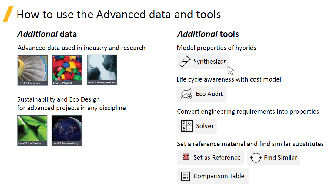 IncludingEnhanced Eco Auditand other tools previously only available in GRANTA (Research) Selector.