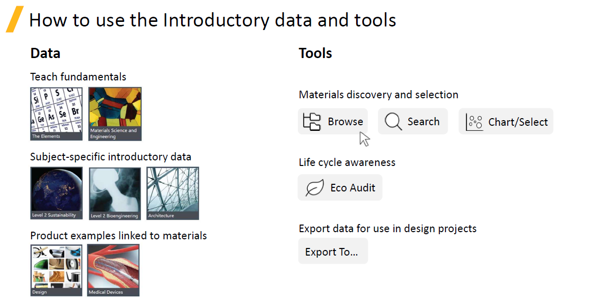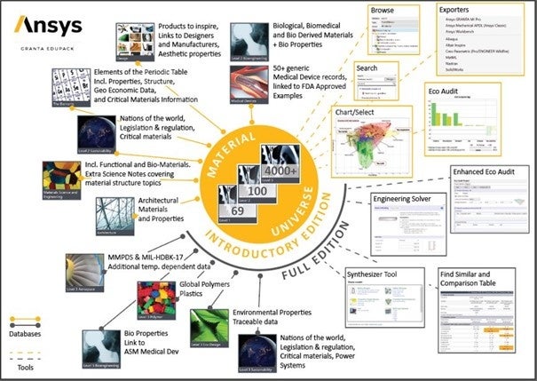 GRANTA EduPack Introductory includes Level 1 and 2 databases from all previous CES EduPack Editions,