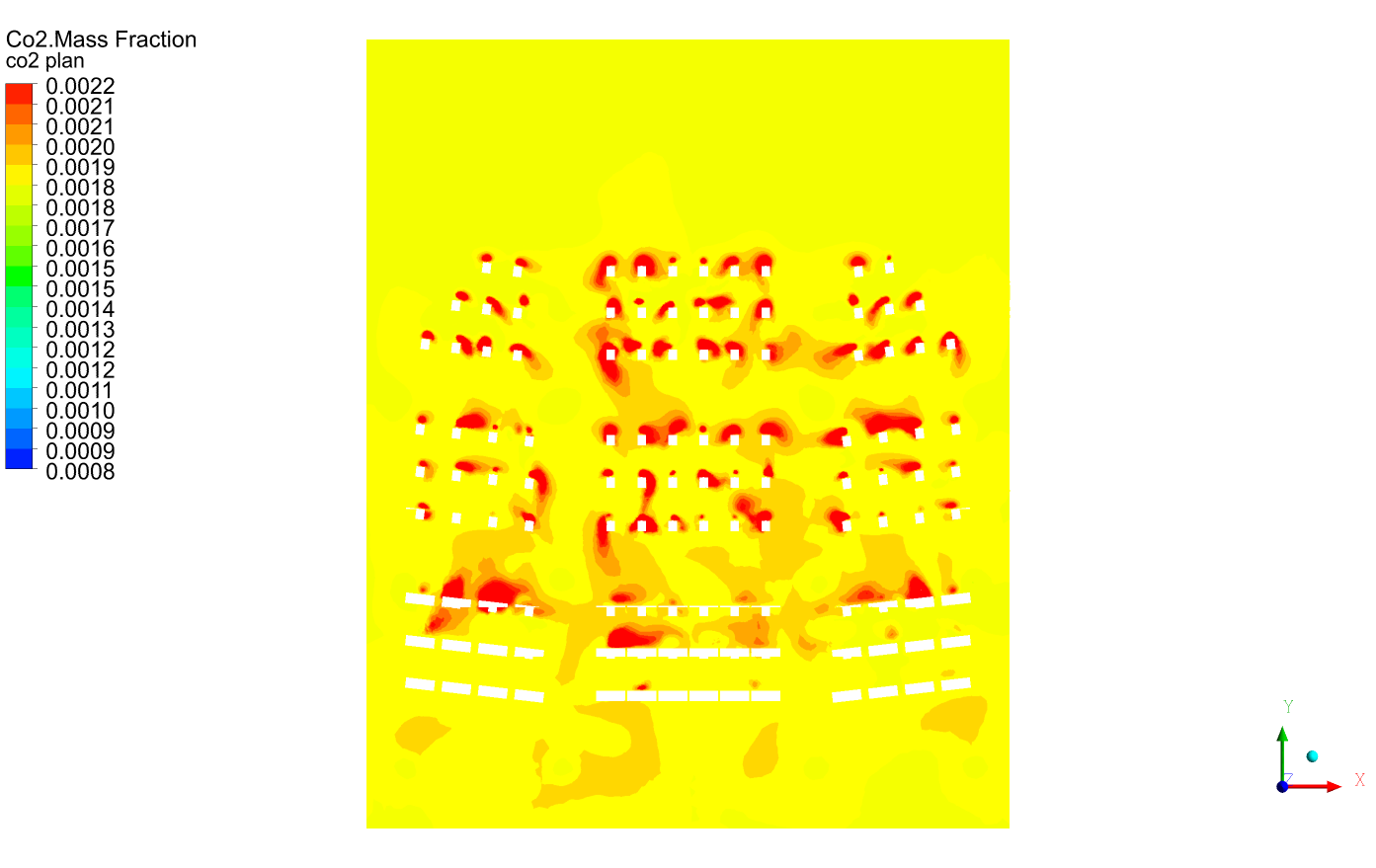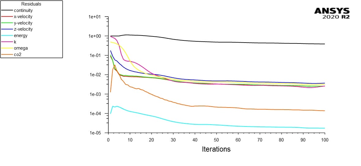 Forum ModeratorHello everyone, I am currently using ANSYS Fluent to perform a CFD simulation of airflow and CO₂ distribution within a tiered classroom, utilizing the Species Transport model (treating CO₂ as a passive scalar).  I have a few questions regarding the correct definition of CO₂ sources and boundary conditions: CO₂ Exhaled by Occupants  (Respiration): What is the recommended method for simulating the CO₂ exhaled by people? Should it be defined as a mass  source term (kg/s) set within a small volume near the mouth, or as a boundary condition (e.g., a velocity inlet with a  specific CO₂ mass fraction)? CO₂ Concentration at Supply Air Diffusers: For the supply air, I have set the CO₂ concentration  to 0.001283 (based on the Air Handling Unit [AHU] settings: 28% outdoor air and 72% indoor air recirculation; thus, at 500  ppm, the mass fraction is 0.000725; at 1000 ppm, the mass fraction is 0.015; 0.72 = 0.001283). Is this approach correct? CO₂  Concentration Setting at Return Air Grilles (Pressure Outlet): For the return air grilles, should I define the mass fraction  of the returning CO₂ as the outdoor concentration (500 ppm), or should I leave it undefined? General Modeling Approach: Which  approach is more appropriate—modeling CO₂ as a volumetric source distributed across the occupied zone, or modeling it as a localized source for each individual occupant? My goal is to obtain a realistic distribution of CO₂ and to evaluate the ventilation effectiveness within the breathing zone. Any suggestions or best practices would be greatly appreciated. Thank you!