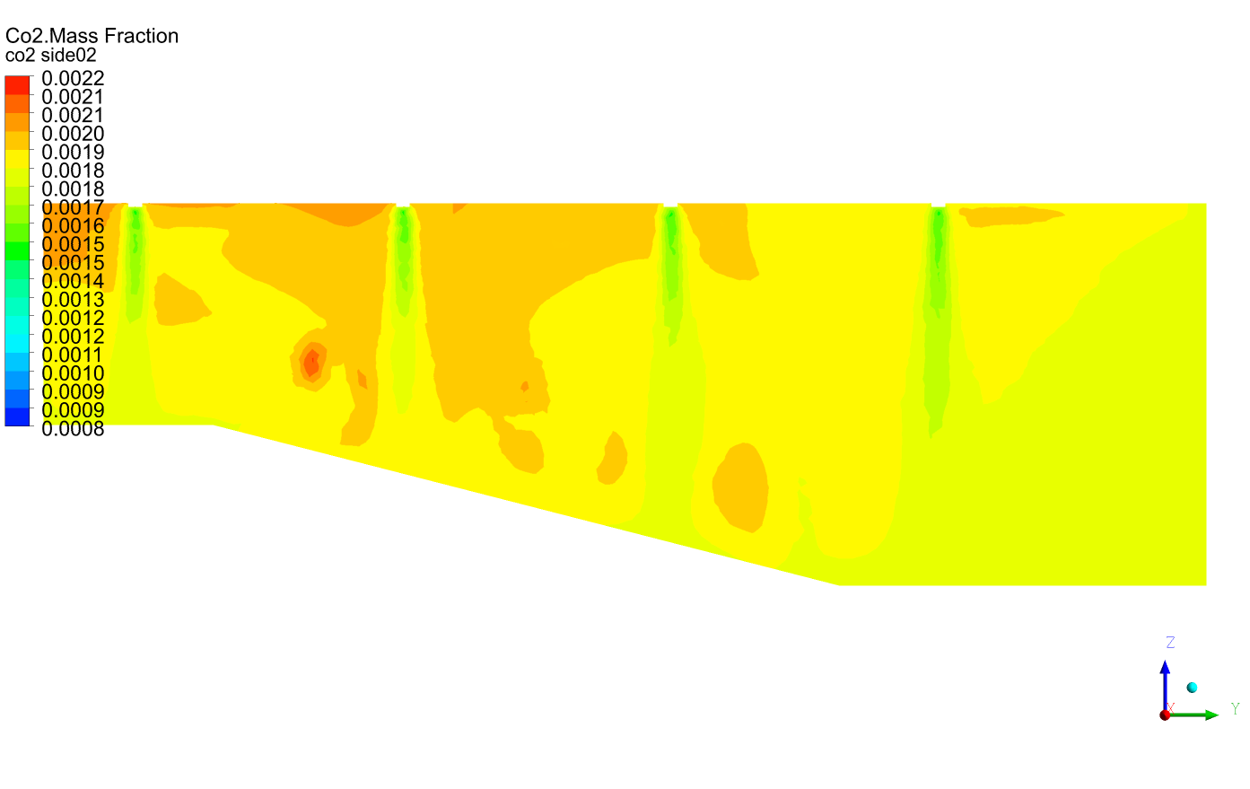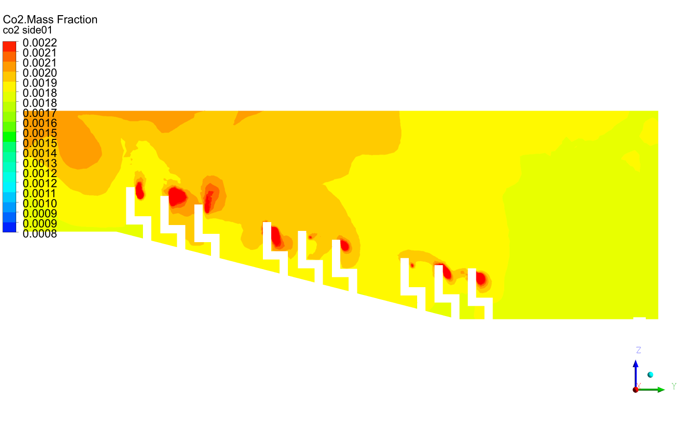 I’ve now adjusted my model to use a source term for CO₂, in the cube( 6cm*6cm*6cm) and put them in front of 5cm mouth inlet, instead of applying them directly at the inlet. For the supply co2 mass fraction, I’m also using expressions to dynamically link the inlet CO₂ concentration to the return air fraction.(0.3 * 0.000759 + 0.7 * Average(MassFraction(species = 'co2'), ['ra'])