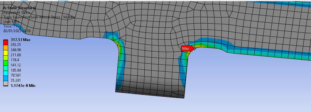 SubscriberHello, thanks for the answer, so you are saying I should check the other planes to see which one is higher for my future works too, by the way I also wanted to ask something, I am reading my max stress from one-two nodes which is in the fillet points and I used mesh convergence, the stress is finite so there is no singularity but it is just in one node. Is it might be artificial stress or should I consider this stress even it is in just one one to evaluate part will fail or not? ( It is not possible to change fillet radius since this radius is used for design the part)