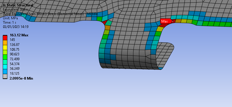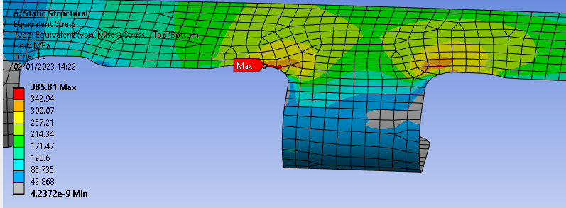 SubscriberHello, I have a non-linear static analysis model which includes brackets assembled by spot weld( I defined bonded contact from circular faces to simulate that). The thing is I got very wildly different results when I checked the von misses stress with varying options of display (Such as elemental mean and averaged) and different positions( Such as top/bottom and mid plane). I checked manual and did some research online but I confused and could not be sure about how to evaluate this solutions, I am trying to check that part is beyond the yield or how far beyond the yield but I can not be sure.