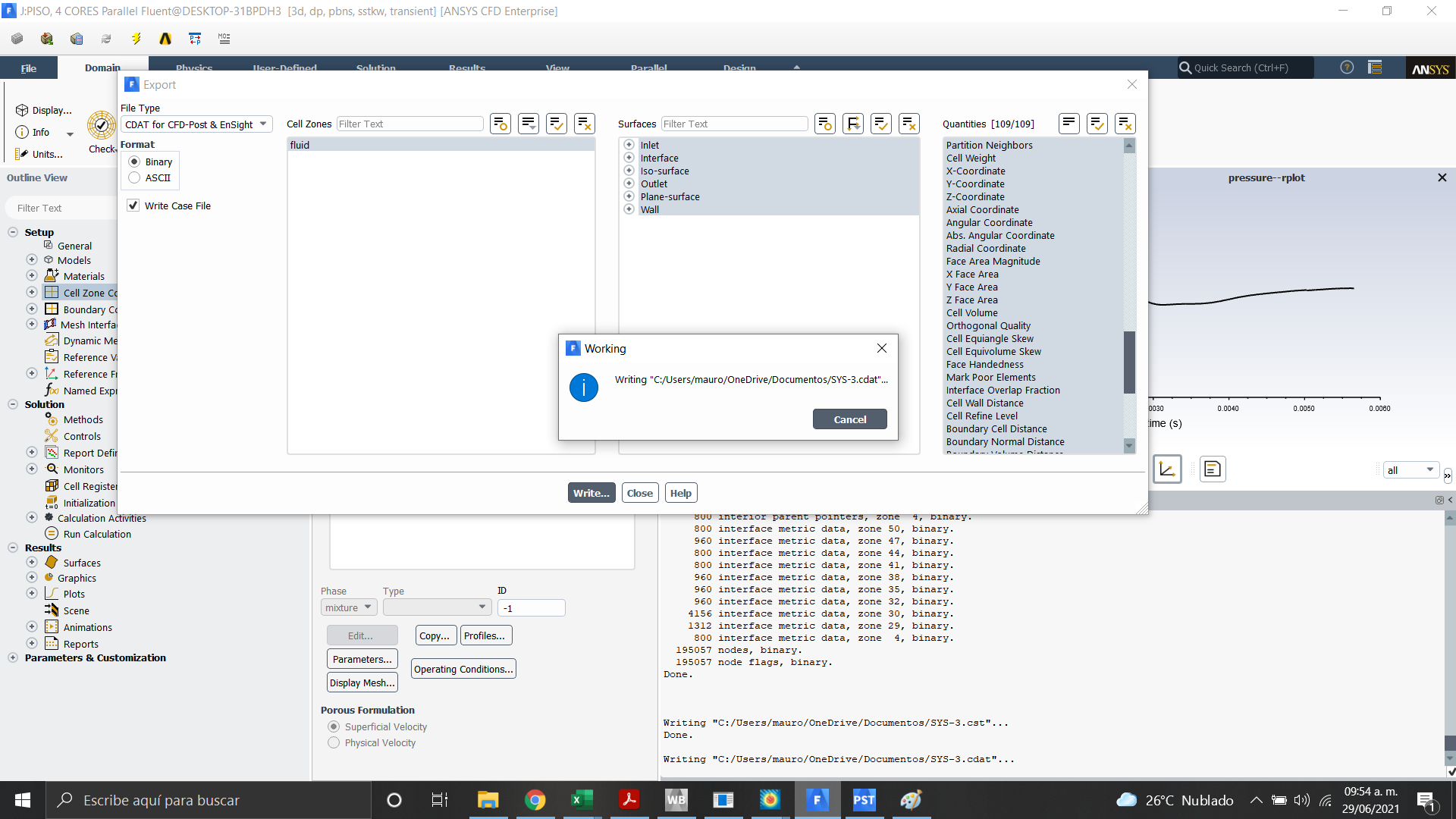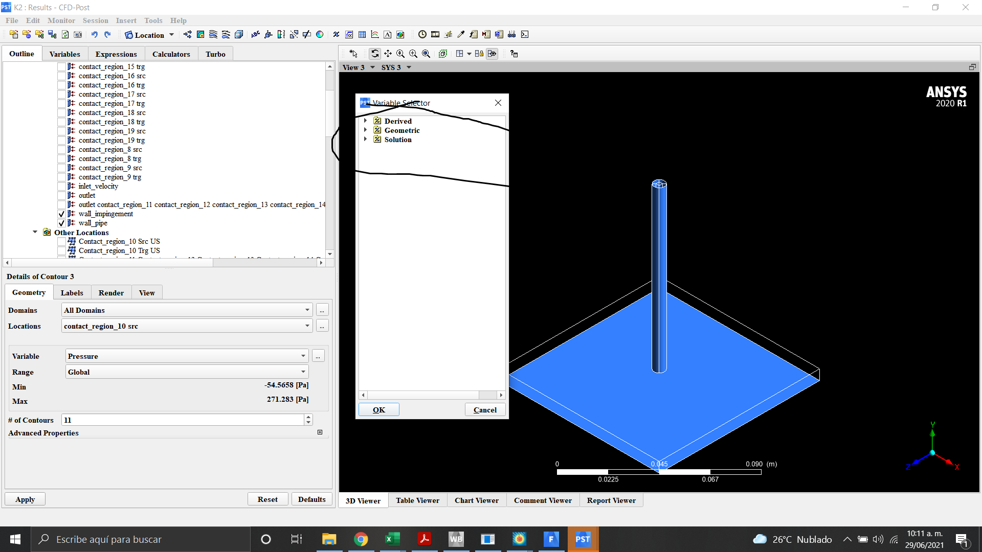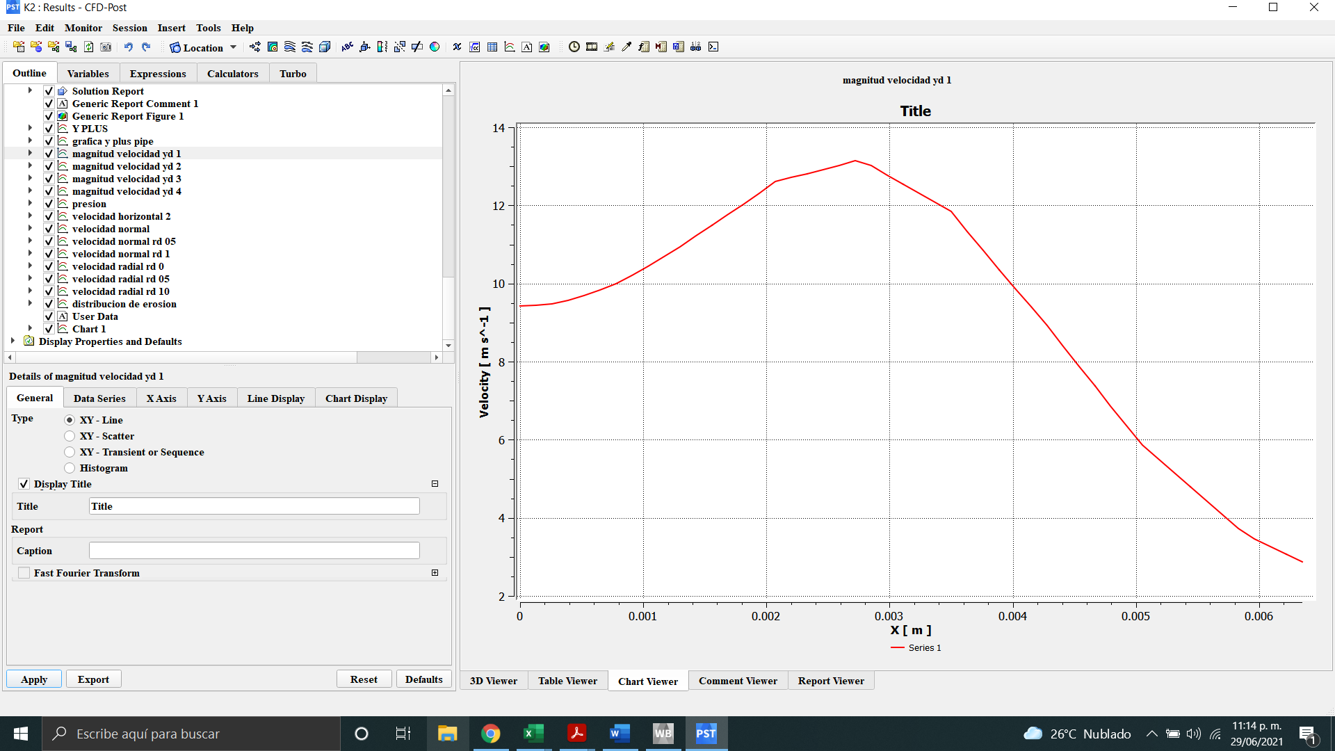 here you can select whatever variable previously exported at Fluent, actually i want to make some plots for exaple (velocity of particule vs radial distance for an specific height) (the model is a typical jet impingement)