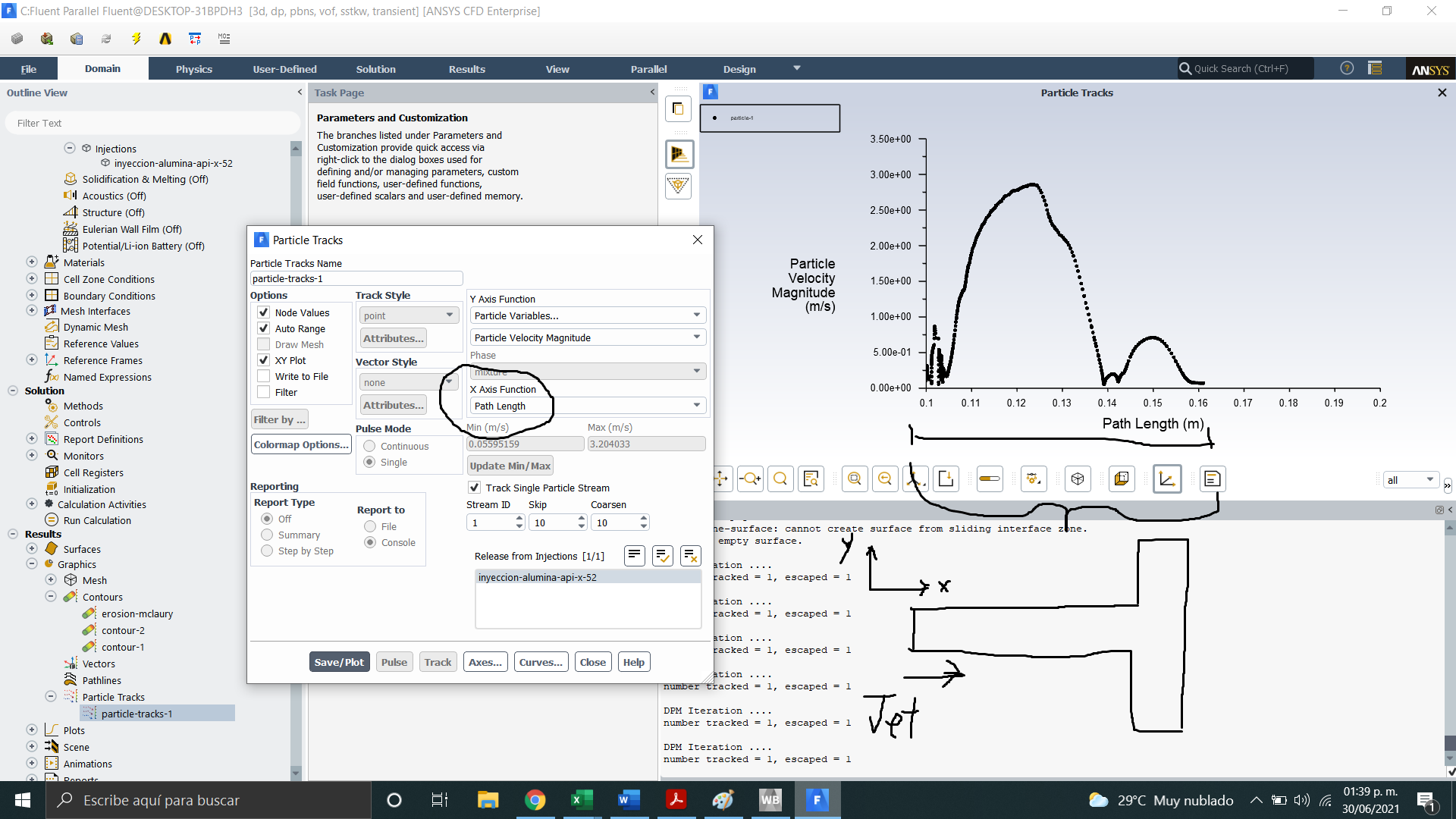 Ansys EmployeeWherever you are in Fluent Hit F1 and then open that Help link. For that kind of plots (Particle position vs distance) along the particle trajectory. You can do that in Fluent.