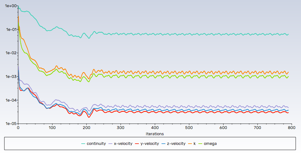 I usually check 3 different variable for convergence. First one is mass flow rate. Whether other variables converge or not, mass flow rate is always conserved in the systems. Other variables that I got convergence problem are scaled residual and result monitors. After few iterations my scaled residual oscillates. On the other hands, my pressure result is starting to become stable. There is no reverse flow in the system and I am improving the mesh quality with the fluent meshing auto node move command, but I can't understand why this problem occurs? Also when I analyze with worse or better meshes, sometimes residual graph converges in 300-400 iterations. Even though I solved the model in approximately 20 thousand iterations last, the residual graph did not converge. I don't know if the stabilization of the pressure results ,while oscillating the scaled residual, would be enough for me to accept the analysis results as correct.