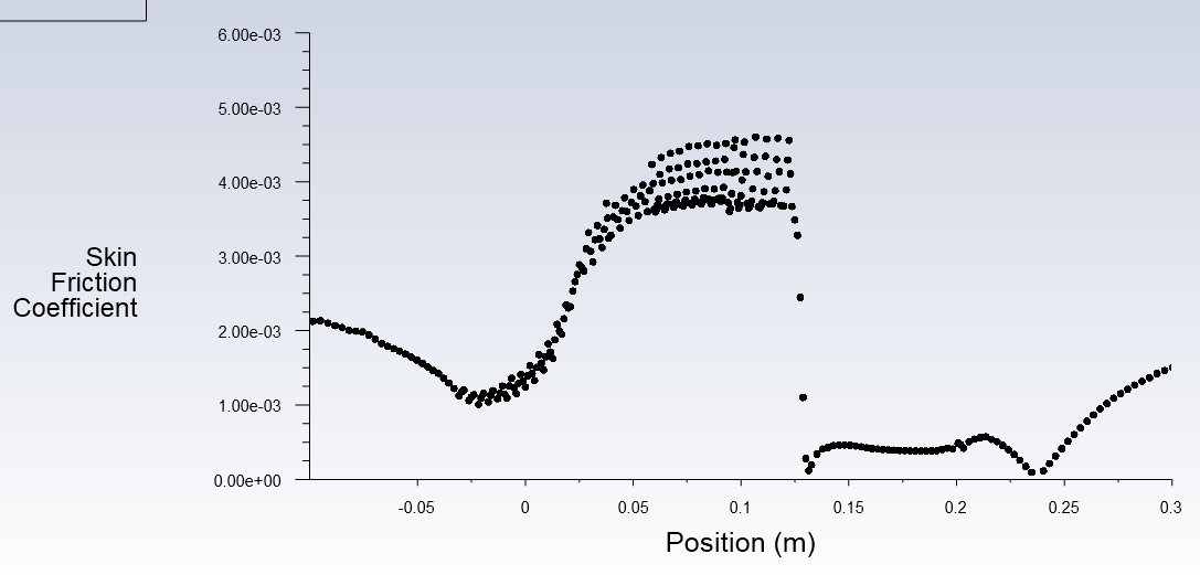 I'm using adaption to refine an existing solution but my final result plots along the wall oscillate wildly. They're oscillating around the right answer (from other papers etc.) but they seem highly unsteady. See images below for Cp and Cf along the wall. It's a 2D transonic flow case, and I'm using second-order Upwind scheme with density-based solver. I've tried adjusting Courant number from 0.1 to 5 and that didn't seem to help. I've run over 100,000 iterations per adaption iteration (10 iterations total) so it should be converged. The oscillations actually get progressively worse over each adaption iteration. I've tried the pressure-based solver with velocity coupling, didn't help. I tried third order MUSCL, also didn't fix it.