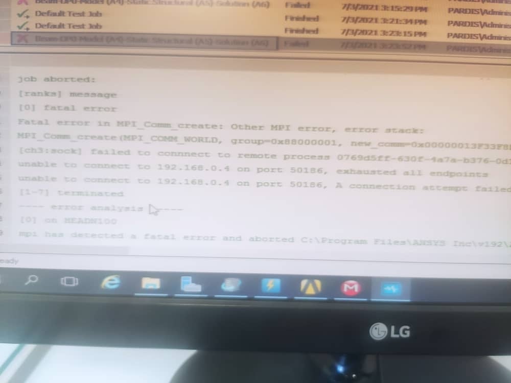 Subscriberi am running ANSYS with windows server 2016 and HPC pack 2016 in cluster. it is multi node environment. when i use one node in simulation process evething is OK. but when increasing number of nodes. ERROR '' unable to connect to 192.168.0.4 on port 50186" happnes. how can i solve this problem.
