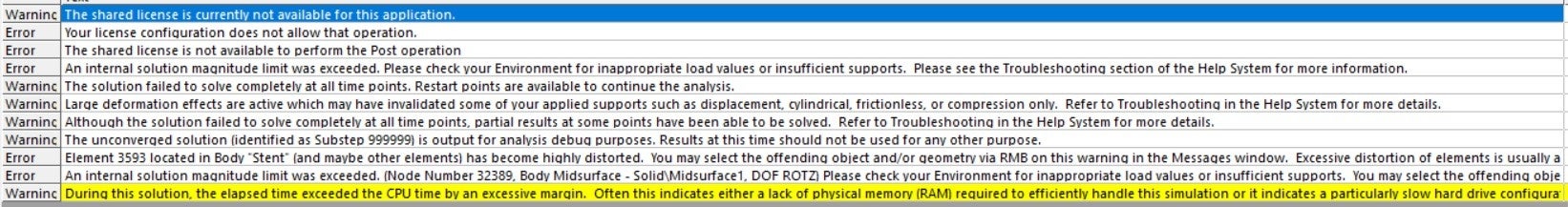 For context, I am radially expanding a coronary stent using a balloon. The displacement is from 3mm to 6mm. I have attached a photo of the geometry and the analysis settings too.