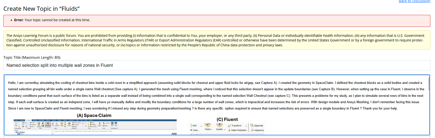 Since three days, I am trying to create a new topic on learning Forum, but I keep getting your topic cannot be created at this time