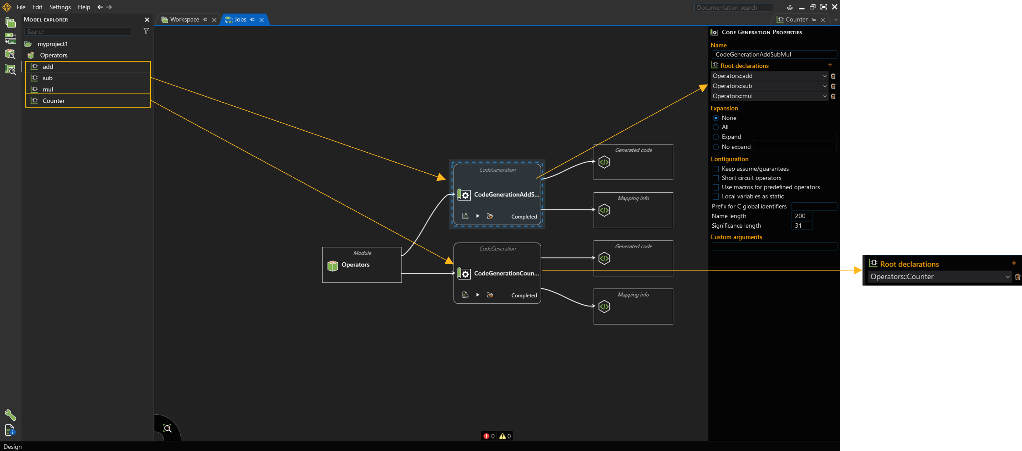 First, prepare the operators you want to test and define job configurations for generating their C code: